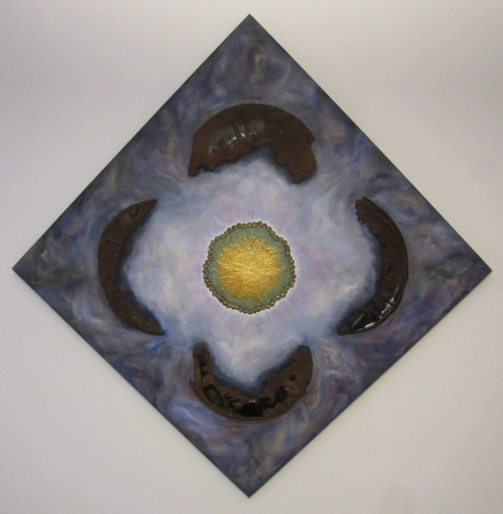 Ma démarche artistique repose sur le fait d’observer, d’être attentif et d’évoluer dans cet univers qui m’entoure. Je puise mon inspiration dans les pièces de métal rouillé que je cueille lors de mes promenades. Par la suite, cette dentelle de métal me sert de point d’ancrage pour me guider vers l’élaboration de croquis préparatoires afin de réaliser la composition finale de mes tableaux. Voilà comment j’exprime par ce processus pictural le besoin viscéral de donner un sens à ma quête d’absolu. Je qualifierais l’ensemble de mes oeuvres de « peinture symbolique » dans le sens le plus noble du terme.